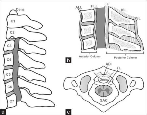 The spine or vertebral column is a column composed of stacked bones called vertebrae. The average length of the vertebral column is 72 cm in male and 62 to 72 cm in female. Each vertebra has a fibrocartilaginous disc (disc) below it and are connected by special types of fibers (strong ligaments) and nerves that strengthen the spine. There are a total of 33 vertebrae in our backbone: